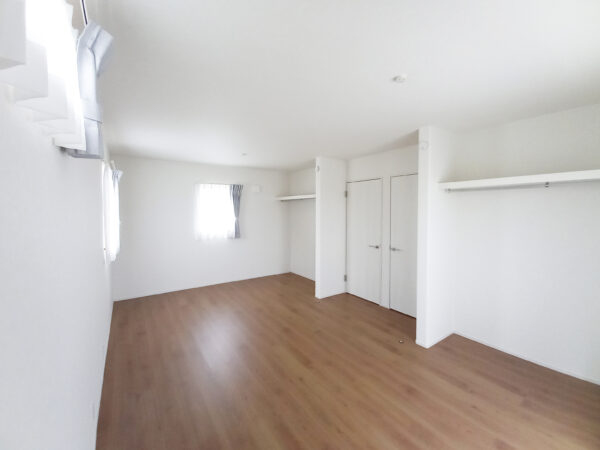 各部屋に十分な収納スペースを確保、さらにホールや廊下にも収納スペースを配し、一切無駄がない間取り。造作棚を多く取り入れているので、引越し後の追加家具の購入は必要ありません。
