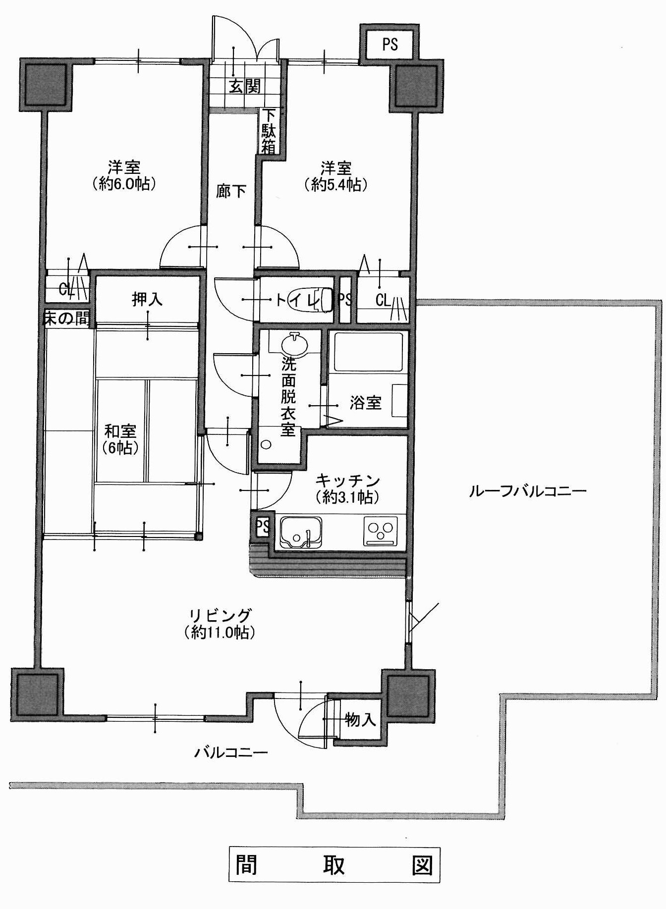 3LDK+ルーフバルコニー