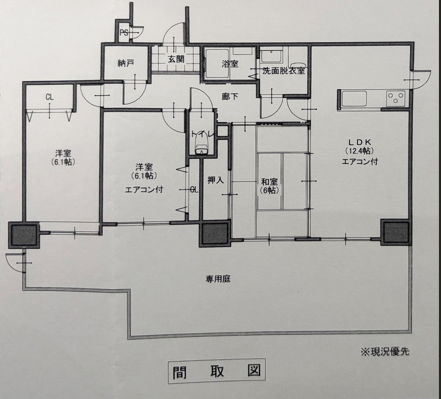 3LDK+専用庭付
